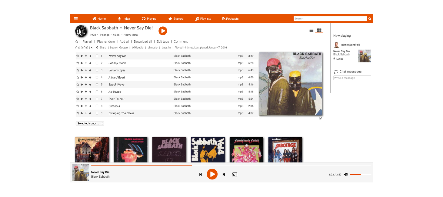 Podcast receiver, Chromecast, Sonos, jukebox mode, on-the-fly downsampling and conversion, multiple frontends, highly customizable, full support for tags, lyrics and album art, DLNA, open REST API, ...